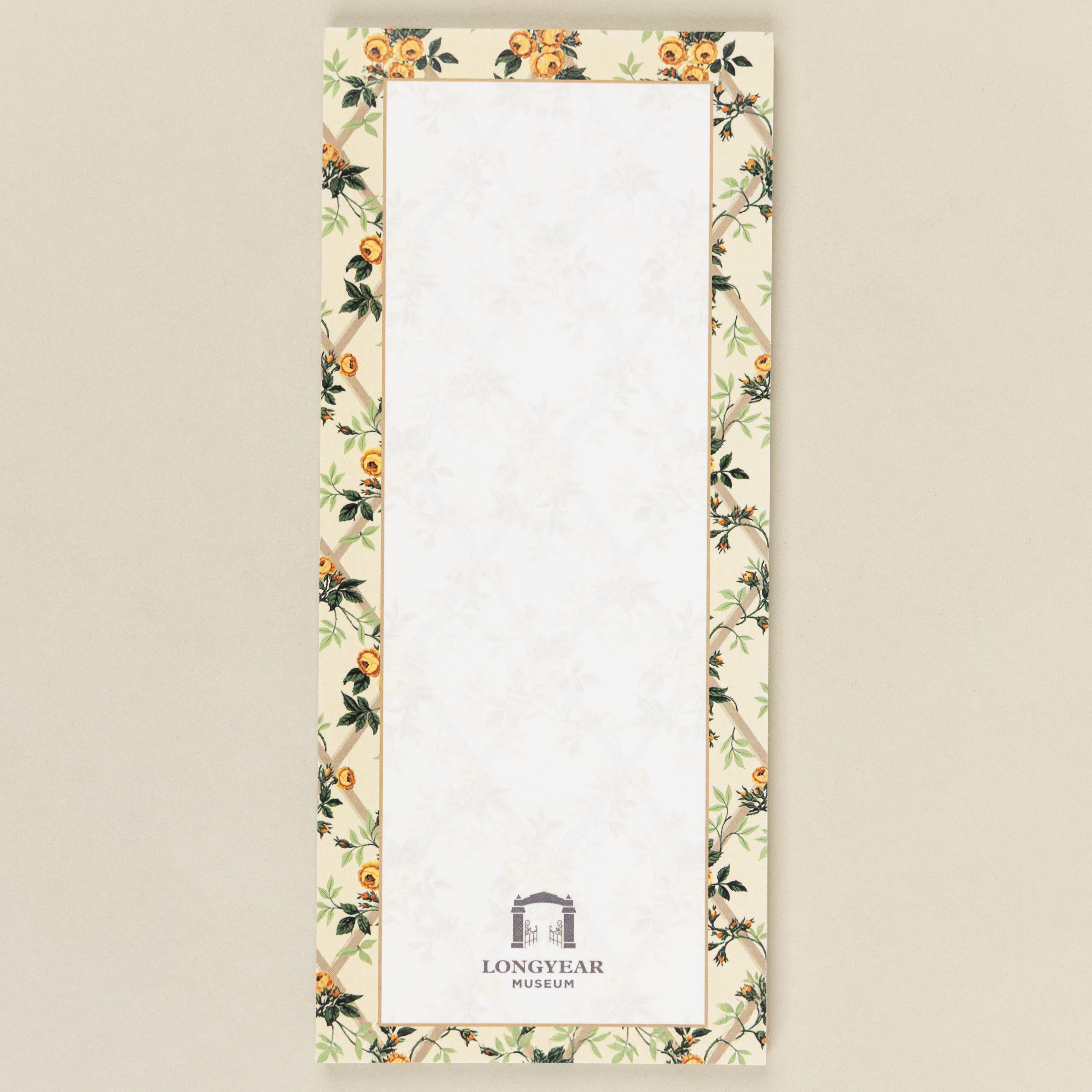 Floral designs from 400 Beacon Street—Mary Baker Eddy’s final home—adorn these magnetic notepads. Choose from three designs: A rose-and-trellis wallpaper pattern from the room of Adelaide Still, Mary Baker Eddy’s personal maid at Chestnut Hill. A yellow floral wallpaper pattern from the room of Elizabeth Kelly, who oversaw the dining room at 400 Beacon Street. A blue-and-yellow floral wallpaper pattern from the room of Martha Wilcox, one of the housekeepers at Chestnut Hill.